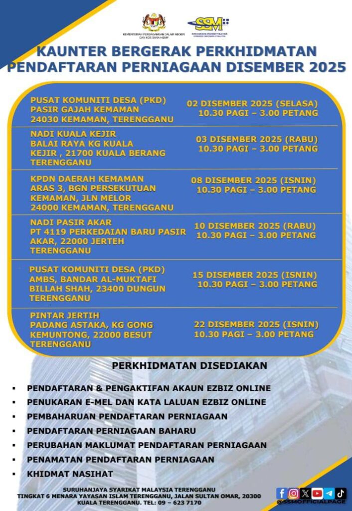 KAUNTER BERGERAK PERKHIDMATAN PENDAFTARAN PERNIAGAAN DISEMBER 2025 – 10 DISEMBER 2025
