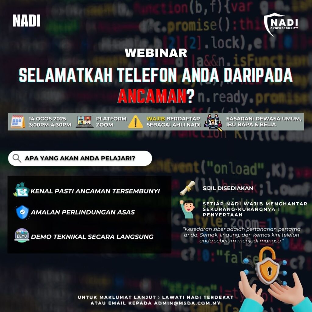 NADI X CYBERSECURITY : WEBINAR SELAMATKAH TELEFON ANDA DARIPADA ANCAMAN