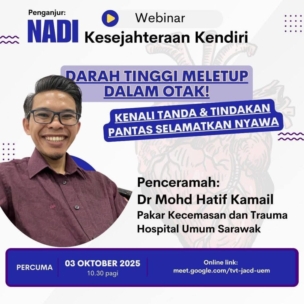 NADI X WELLBEING : Webinar DARAH TINGGI MELETUP DALAM OTAK! KENALI DAN TINDAKAN PANTAS SELAMATKAN NYAWA