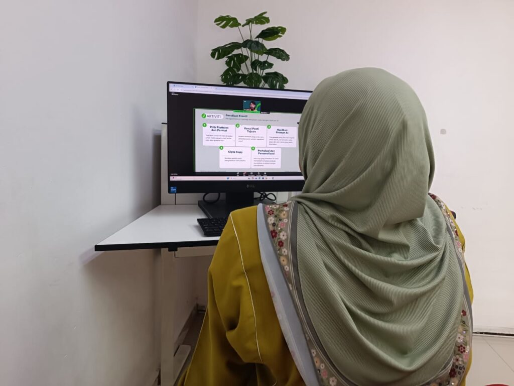 | Aktiviti : NADI x Keusahawanan – WEBINAR AI UNTUK MENCIPTA KANDUNGAN. Kecerdasan buatan (AI) memainkan peranan penting dalam mencipta kandungan pemasaran yang lebih pantas, menarik dan berkesan. Dengan bantuan AI, pemasar boleh menghasilkan teks promosi, reka bentuk visual, video, serta strategi kempen yang disesuaikan dengan minat pelanggan. AI juga mampu menganalisis data pengguna untuk memahami trend pasaran dan mencadangkan idea kandungan yang lebih relevan. Selain menjimatkan masa dan kos, penggunaan AI meningkatkan kecekapan dalam menjangkau sasaran audiens dengan mesej yang tepat, menjadikan pemasaran digital lebih pintar dan berimpak tinggi. Gambar Disini |
