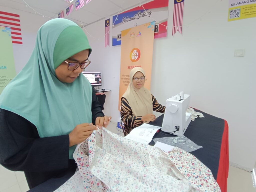 | Aktiviti : Peserta diberi taklimat dan menyertai webinar NADI MAHIR iaitu NADI x Pembelajaran Sepanjang Hayat secara atas talian. Peserta dimaklumkan secara detail tentang kaedah pelaksanaan kursus dan kemahiran yang akan dijalani. Kelas kali ini peserta mula menjahit kain susun tepi. Gambar Disini |