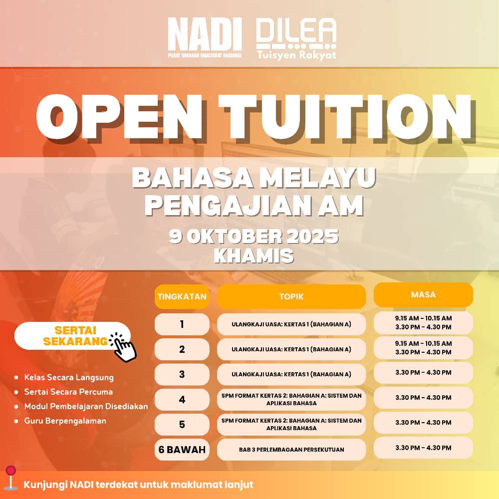 Perkhidmatan Pintar NADI Nurture DiLea OPEN TUITION CLASS (BM F1)