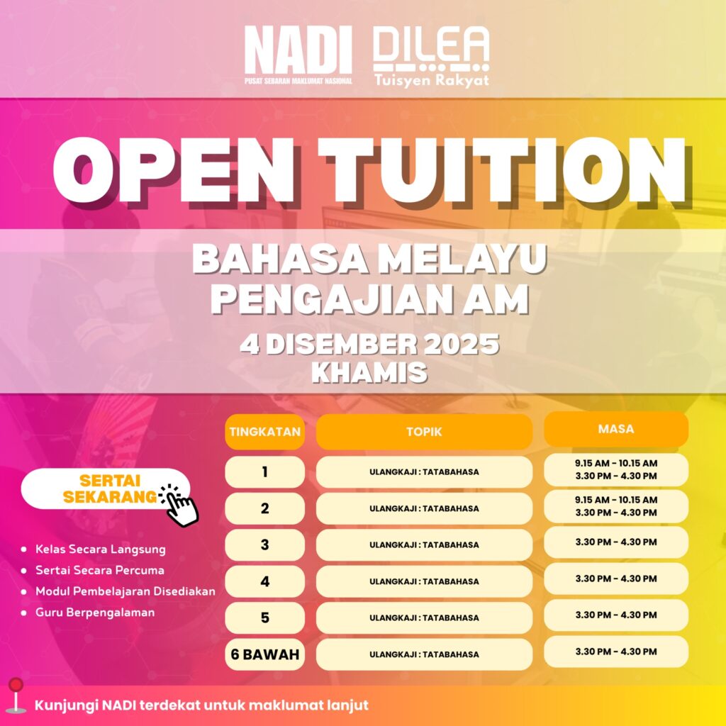 Perkhidmatan Pintar NADI Nurture DiLea OPEN TUITION DISEMBER 2025 (BAHASA MELAYU F1,F2,&F3)