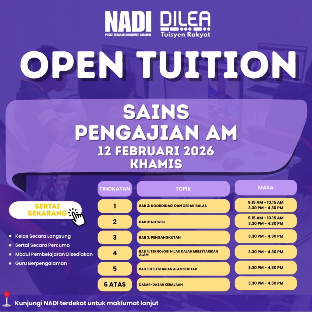 Perkhidmatan Pintar NADI Nurture DiLea OPEN TUITION FEBRUARI (SAINS F1,F2)