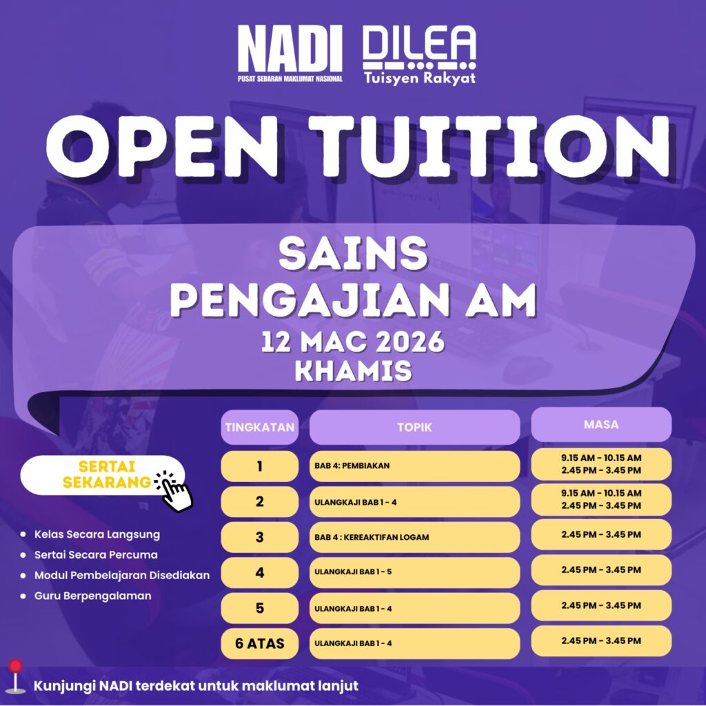 Perkhidmatan Pintar NADI Nurture DiLea OPEN TUITION MAC (SAINS F2,F3 )