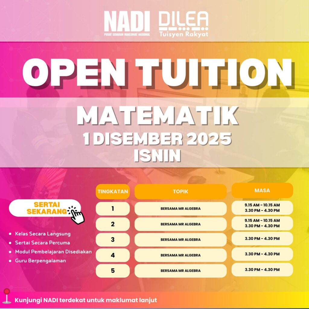 Perkhidmatan Pintar NADI Nurture DiLea OPEN TUITION DISEMBER 2025 (MATEMATIK F1, & F2)