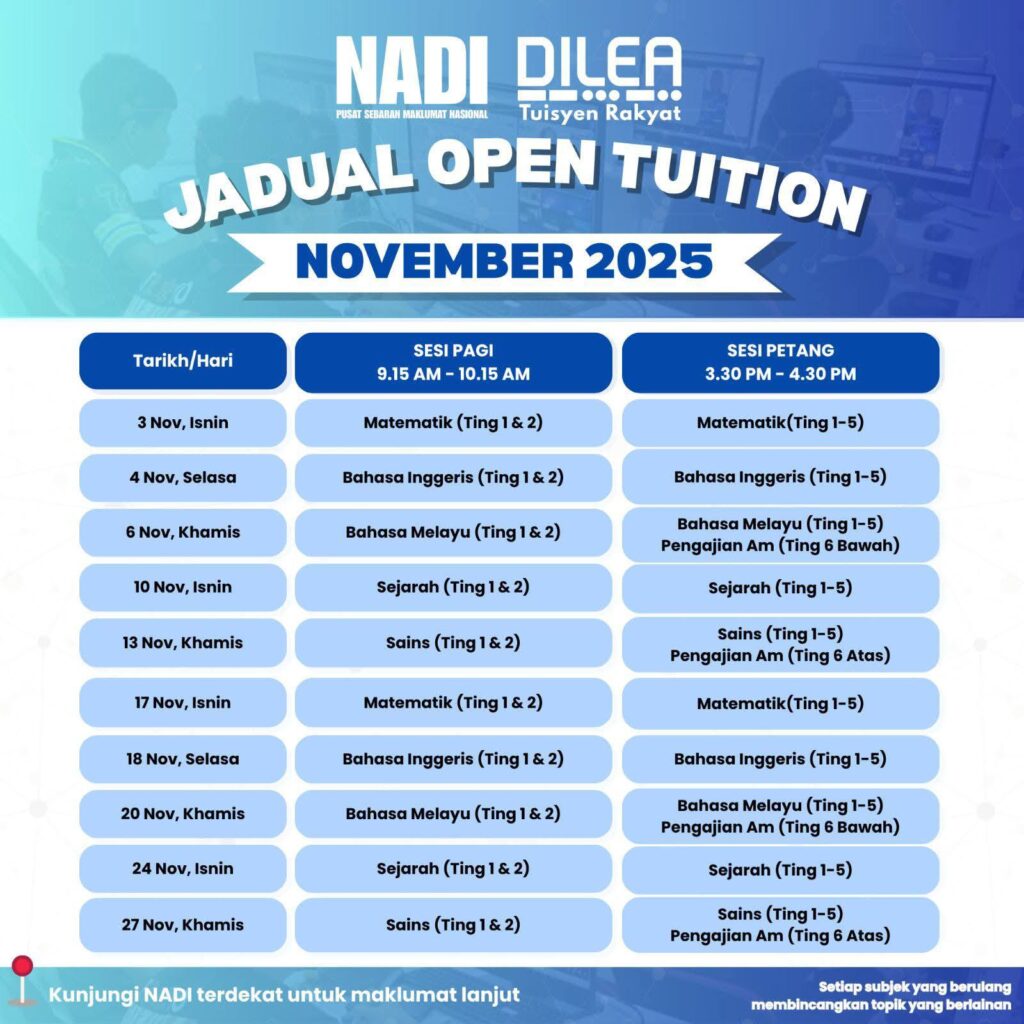 Perkhidmatan Pintar NADI Nurture DiLea OPEN TUITION NOVEMBER 2025 (SAINS F1)